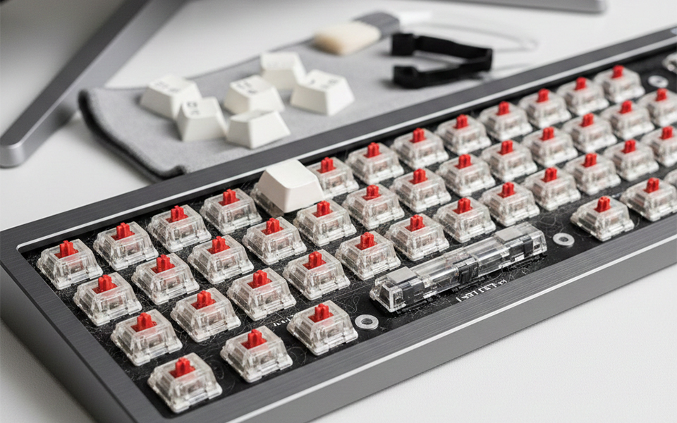 キートップを外せるものもありますが、ツメが折れやすく、外した後の再装着が非常に面倒なモデルが多いです。