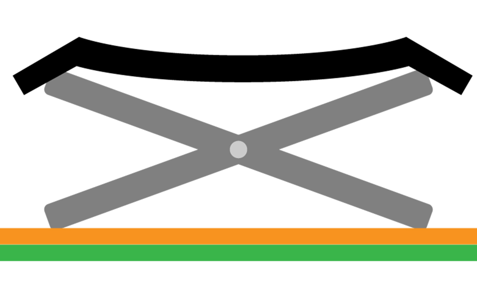 電車が電線から電気を取り込むのに使っているパンタグラフと同様、ひし形の構造をしています。